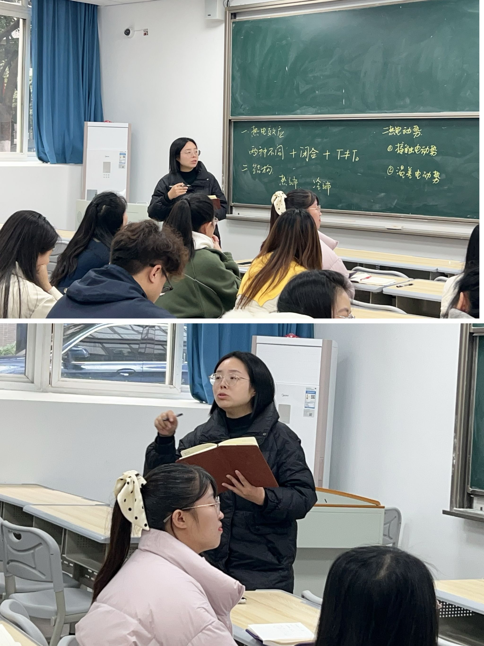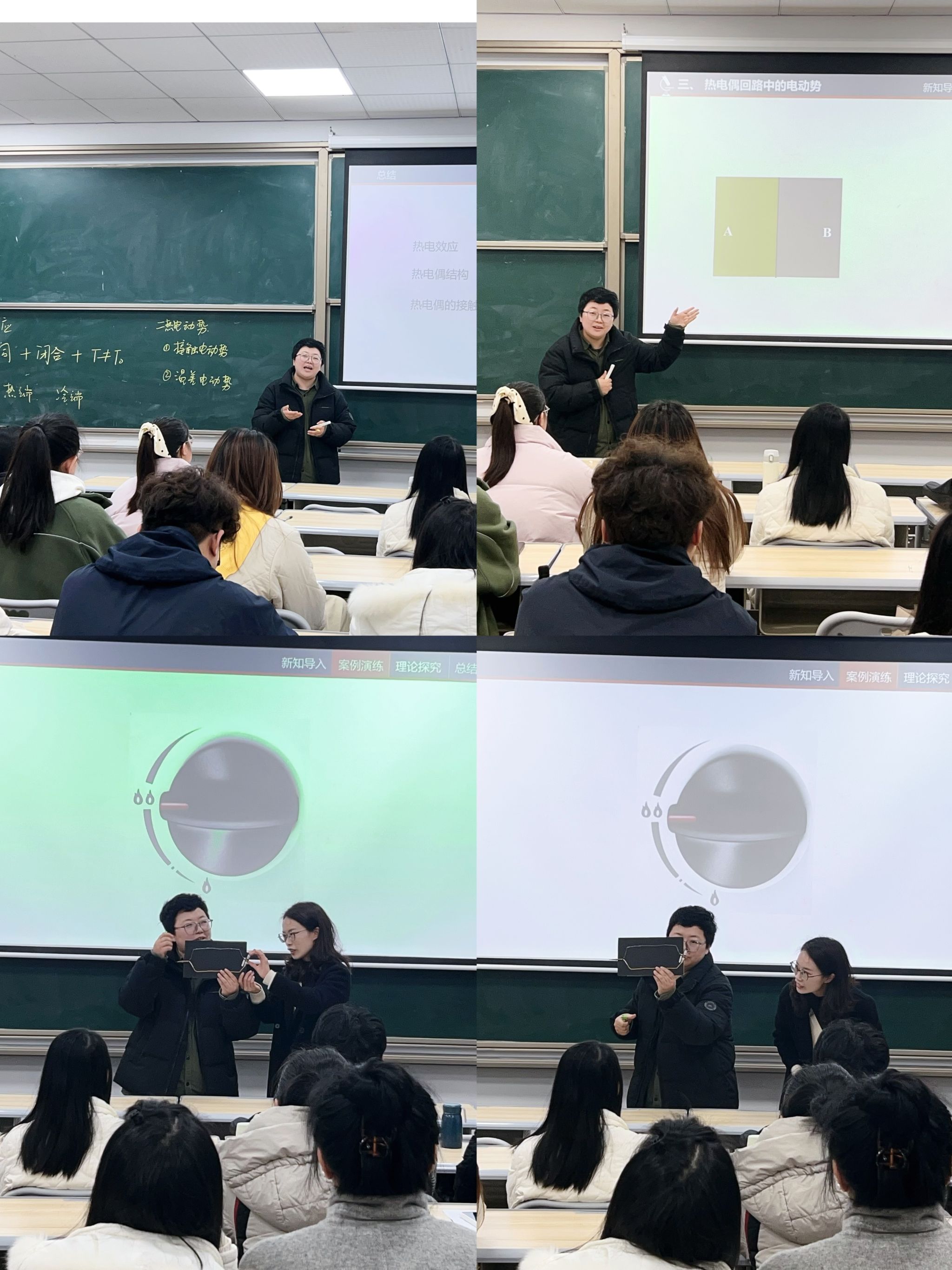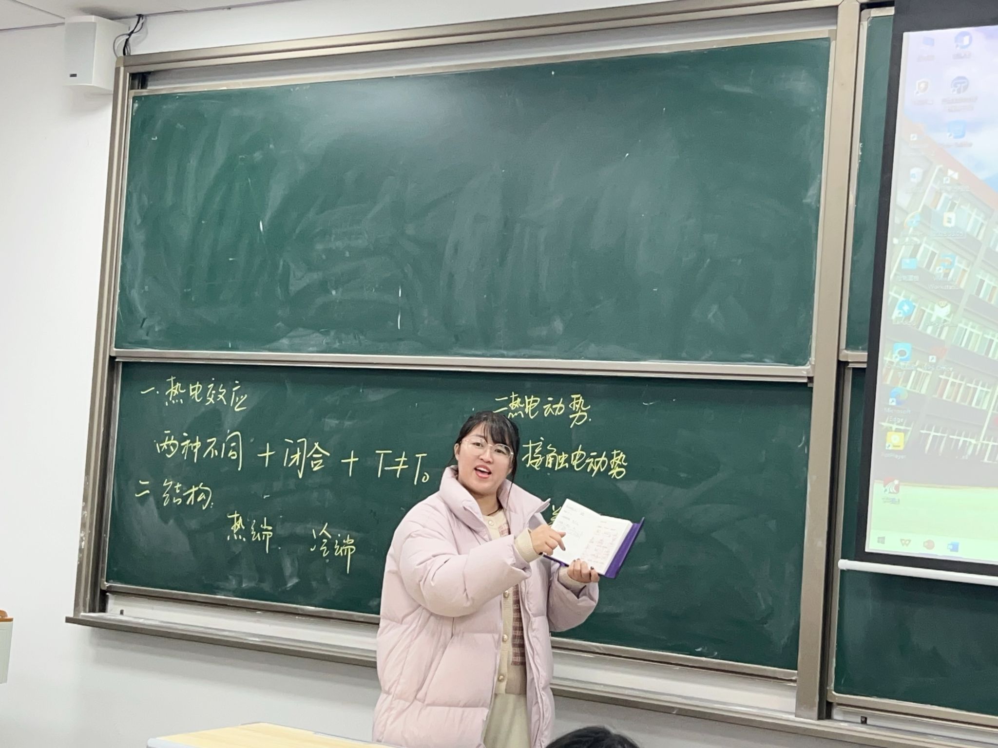 程彩铃老师在 2024 年青年教师竞赛理科组中荣获第一名,教学经验丰富、成果显著。本次分享会,程老师以《将相和—热电偶》为主题展开示范课,她结合自身丰富的备赛与教学经验,深入浅出地讲解教学的各个关键环节。为了让老师们更直观地理解课程内容,程老师还别出心裁地制作了简易道具,将复杂的教学内容直观呈现。这种新颖的教学方式让课程生动有趣,赢得了在场教师的一致好评。