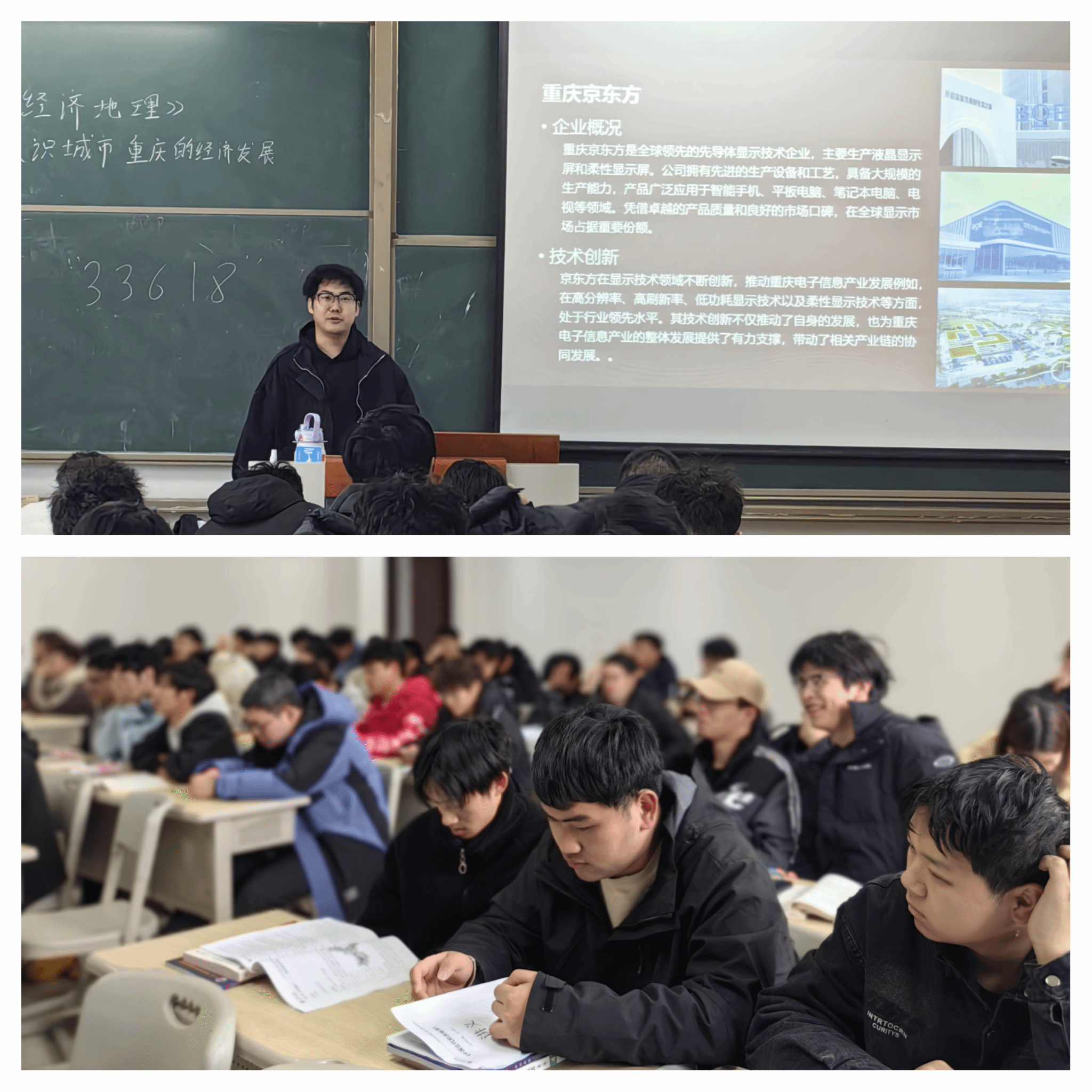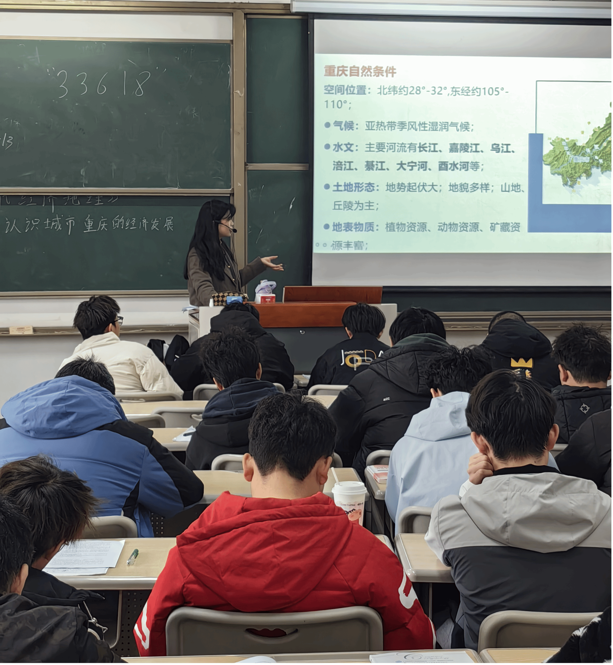 课前,两位老师就第三章《认识城市:重庆的经济发展》展开探讨与分析,结合学生的兴趣,围绕重庆的产业布局和人才需求进行了充分准备。单旭燕老师从历史经济地理的角度,梳理了重庆的产业演变脉络,而罗菊老师则聚焦于重庆的现代产业体系,结合学生的专业背景,精心设计了课件内容。这种定制化的教学设计旨在帮助学生更好地理解重庆的经济格局以及与自身专业相关的产业发展方向。