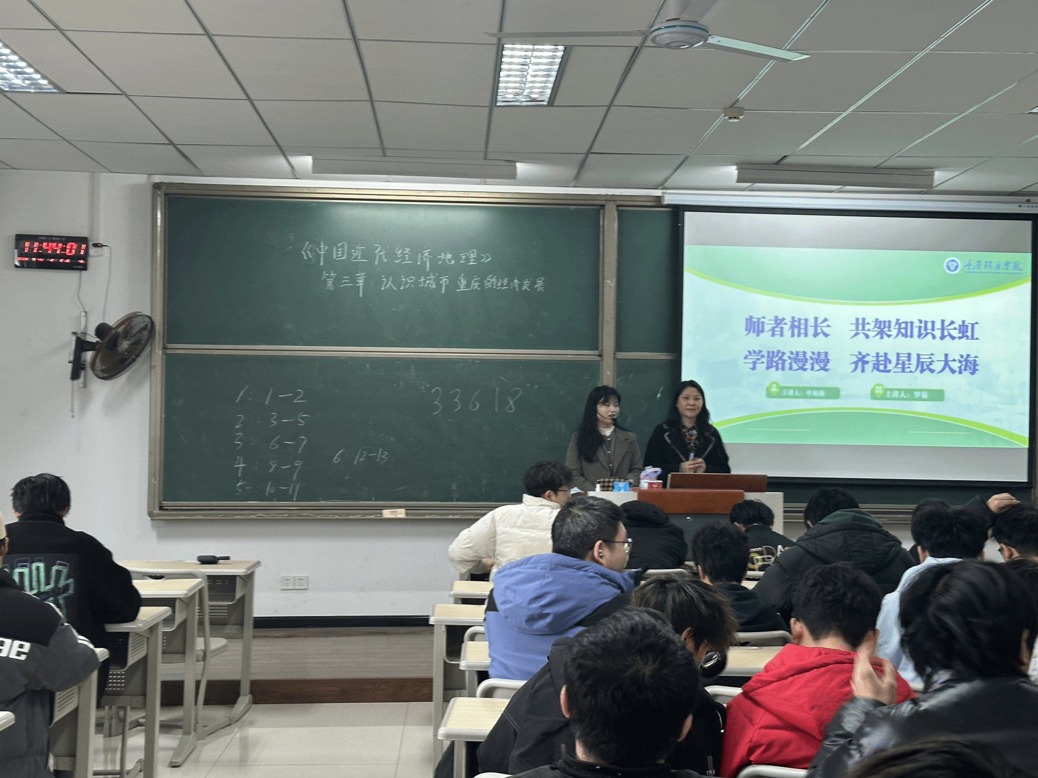 3月11日,通识教学部主讲《中国近代经济地理》的单旭燕老师与通信与信息工程学院罗菊老师联合开展了一场双师授课。两位老师以“重庆的经济发展与人才需求”为主题,结合理论解析、案例研讨和职业能力素养培养,为75名大二同学带来了一场兼具宏观视野与实践指导的课堂。