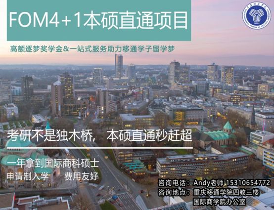 中国民办大学第一重庆移通学院和德国商科私立大学第一德国埃森经济管理应用技术大学(FOM大学)强强联手打造的FOM4+1本硕直通项目火热招生中!