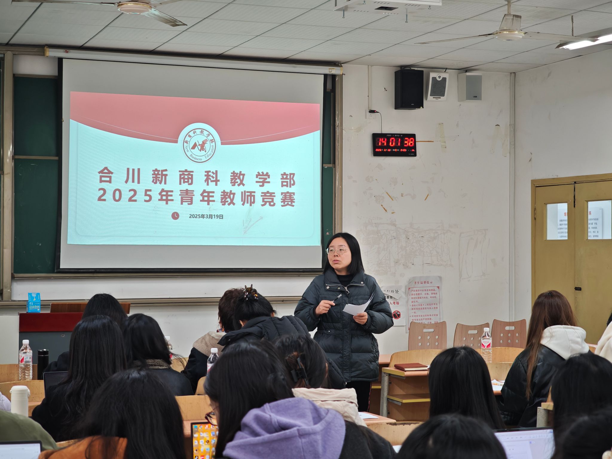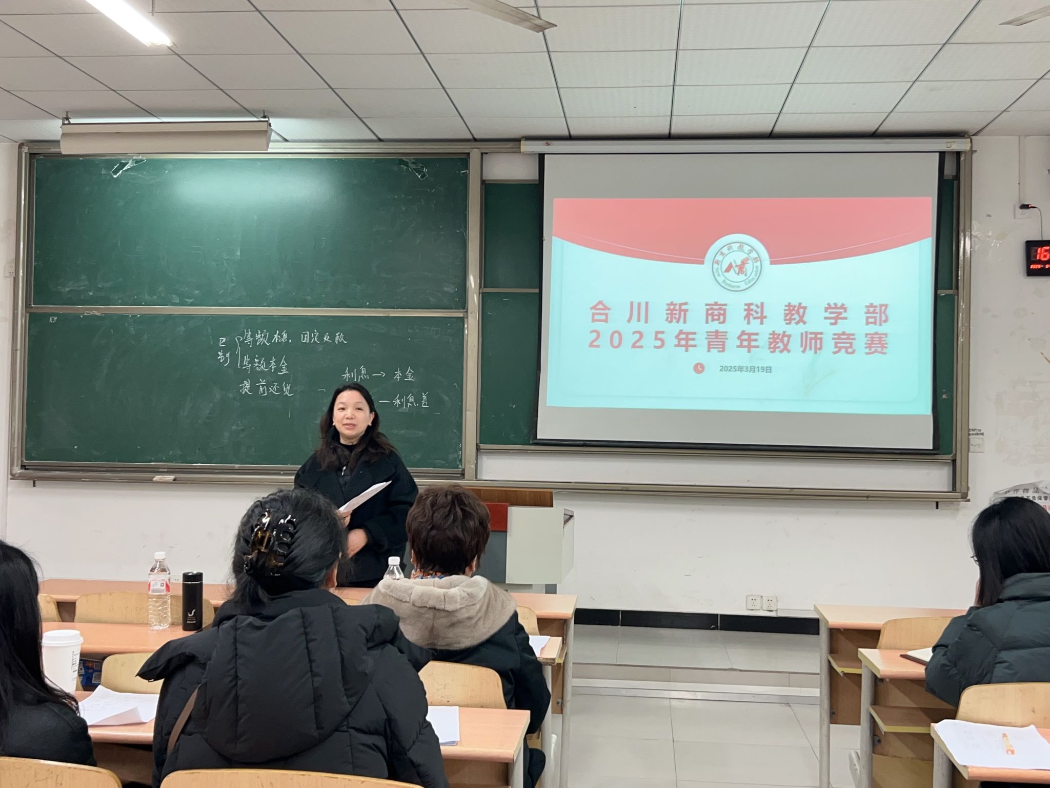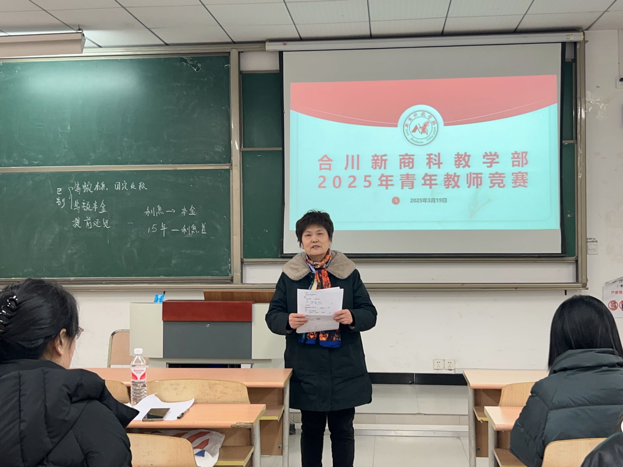 为进一步增强青年教师的教学技能并激发教学创新活力,合川新商科教学部于3月19日下午14:00,在5103开展了2025年青年教师竞赛。本次竞赛共七位教师参赛,由教学部副主任李义红、教研室主任谭小珂、王力东、院部督导赵艳,还特别邀请了重庆市品牌学会秘书长王红君、校级督导金光美及通识教学部人文教研室主任唐钦钦三位老师共同担任评委,其余教师观摩学习。