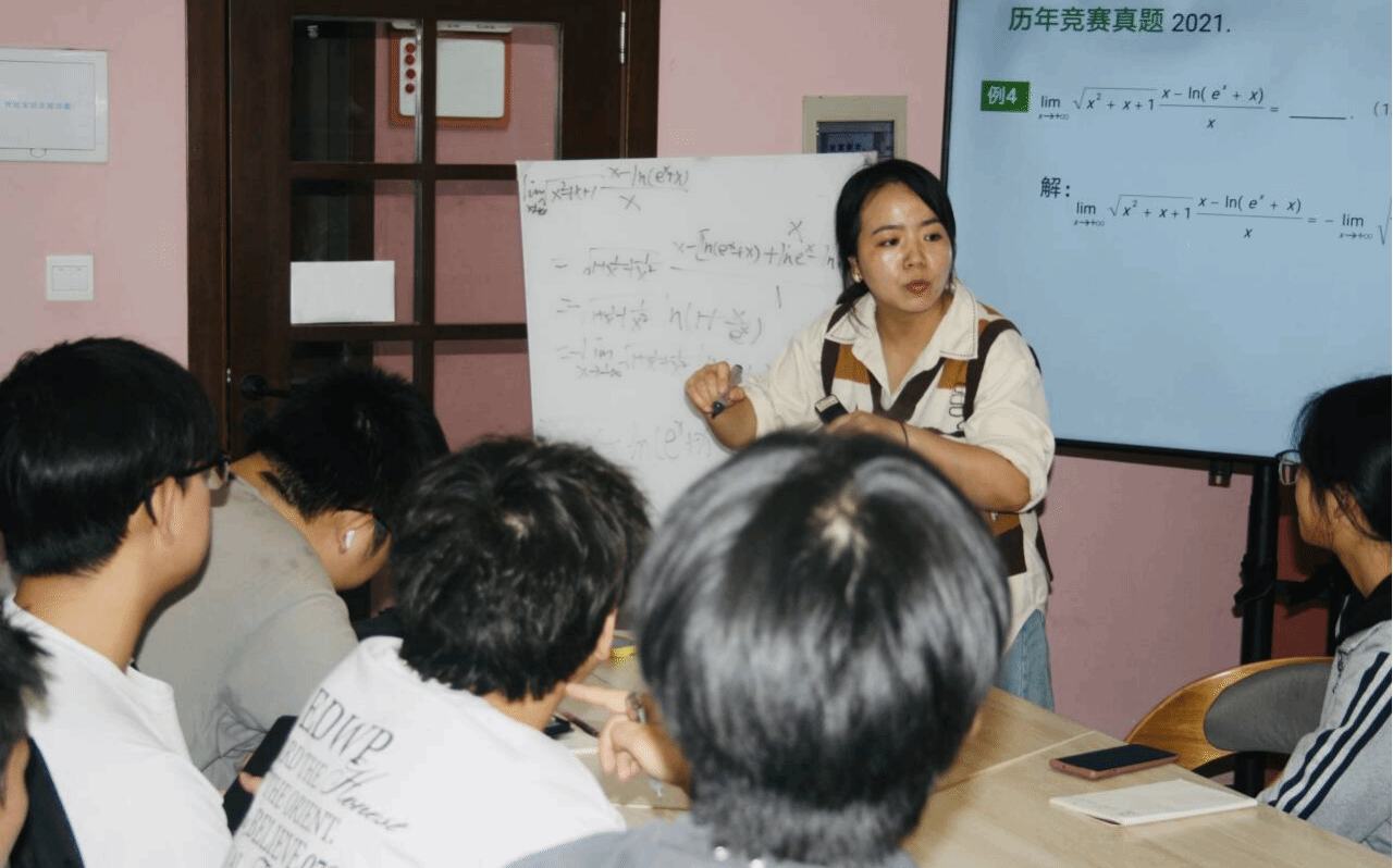 首先由赵珊老师结合竞赛真题讲解了极限的基本方法和经典赛题。同学们在赵老师的启发下,热烈讨论,渐入佳境,激发了同学们探索热情。赵老师强调,面对竞赛中的复杂题目,只要分步分析、循序渐进,最终一定能找到解题思路,攻克难题!