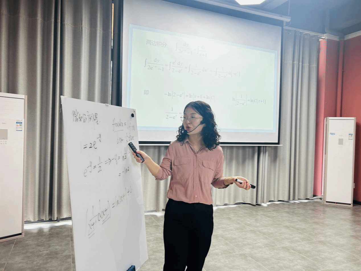 首先由宋娜娜老师深入解析在数学竞赛中的核心考点:微分方程。她通过精选实例展示了各种微分方程的解题策略,激发了学生的学习兴趣。宋老师强调,通过持续的练习和深入的探索,学生能够提高解决复杂数学问题的技能,她鼓励学生在日常练习中不断磨练自己,以高效、准确的方式迎接数学竞赛!