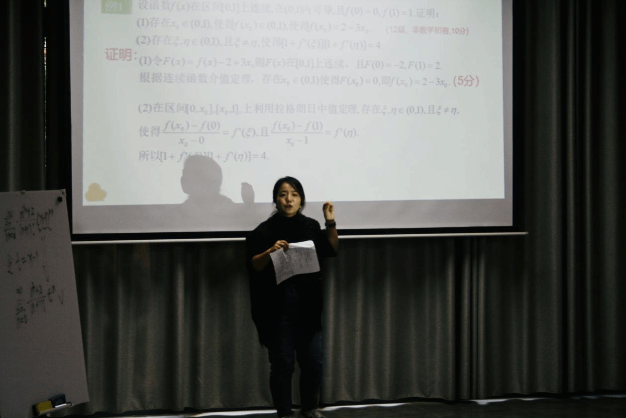 最后,赵珊老师将中值定理作为重点,对竞赛中高频出现的题型进行了细致的剖析。她的讲解既生动又具体,将抽象的理论转化为容易理解的概念。这种方法不仅深化学生对中值定理的理解,也增强了他们运用定理解决竞赛问题的灵活性,极大提升了他们在竞赛中的表现力。