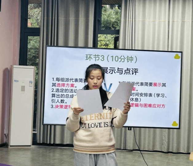 在“千元妙策”中,各小组围绕活动创意、预算分配和收益分析展开激烈讨论,充分展示了团队的逻辑推演与实践应用能力。而“任务智绘”则聚焦于时间管理与资源统筹,学生们通过科学分工、合理规划,设计出了高效可行的解决方案,展现了团队合作与统筹能力的深度融合。