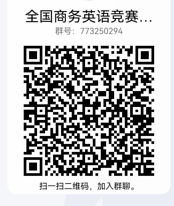 想要咨询了解的同学可以加入全国商务英语竞赛-移通咨询群咨询,群二维码参见附件二(群号:773250294),群内会有指导老师进行答疑。