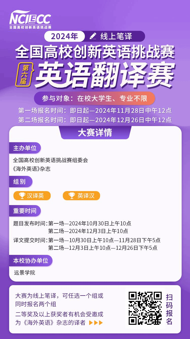 2、2024年第六届全国高校创新英语翻译赛开始报名