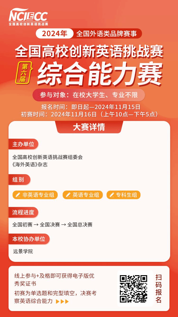 4、2024年第六届全国高校创新英语综合能力赛正在报名!