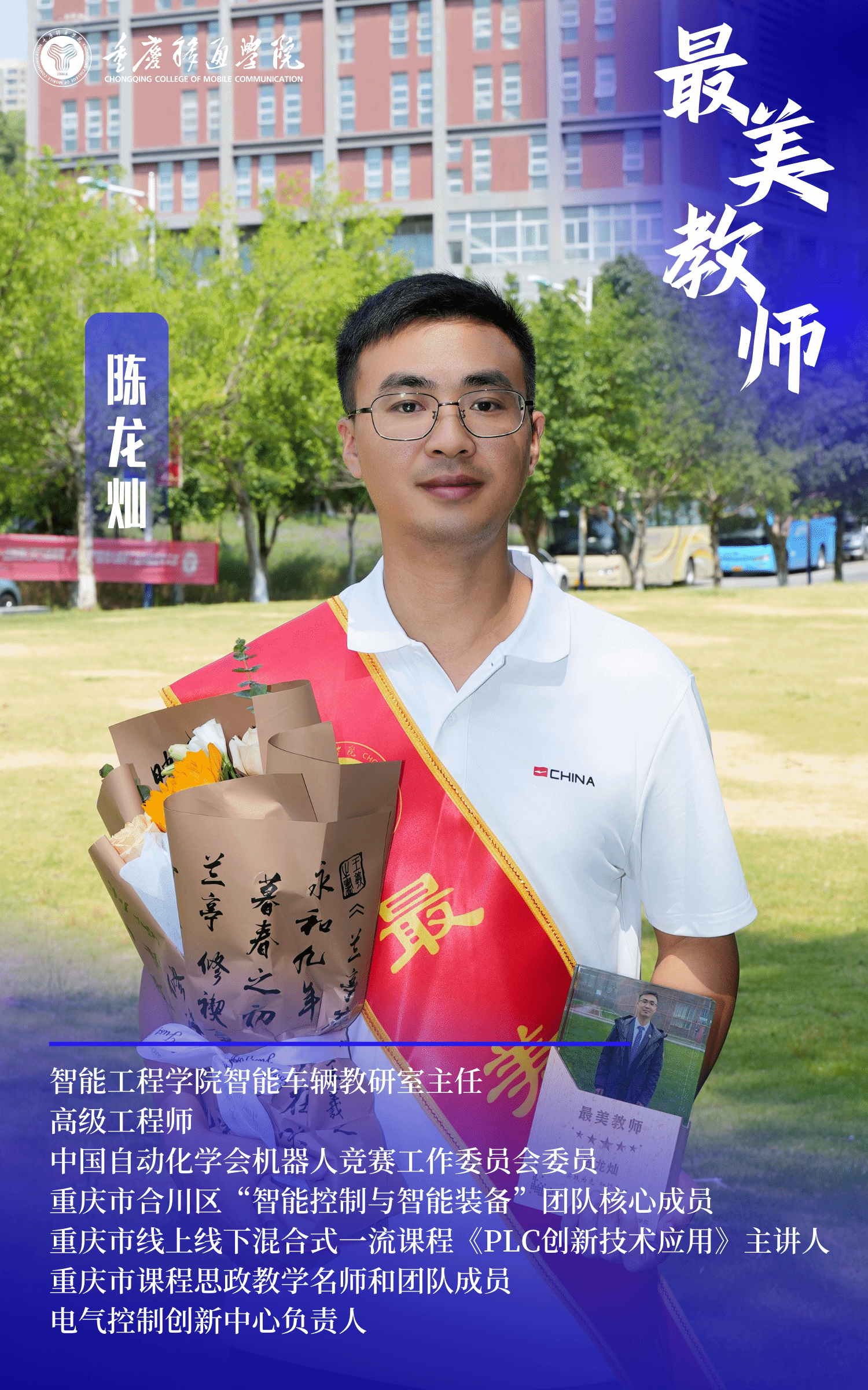 陈龙灿,1986年10月出生,贵州省遵义市人,智能工程学院智能车辆教研室主任。高级工程师,中共党员,中国自动化学会机器人竞赛工作委员会委员,重庆市合川区“智能控制与智能装备”团队核心成员,重庆市线上线下混合式一流课程《PLC创新技术应用》主讲人,重庆市课程思政教学名师和团队成员,电气控制创新中心负责人。主要研究方向:工业控制及智能产线设计与研发,机器视觉质检与工业机器人开发与应用。近五年,发表期刊论文20余篇,主编教材2部,专著1部,主持省部级以上项目2项,参与多项。2013-2024年度期间累计荣获教学优秀奖1次,百万基金优秀教师奖4次,远景特级教师奖3次,远景杰出教师奖2次,指导学生学科竞赛累计荣获国家级A类竞赛全国一等奖6项,全国二等奖8项,省部级以上特等奖、一等奖等30余次,全国大学生创新创业训练计划国家级项目立项1项,省部级5项。授权发明专利2项,授权实用新型专利1项。