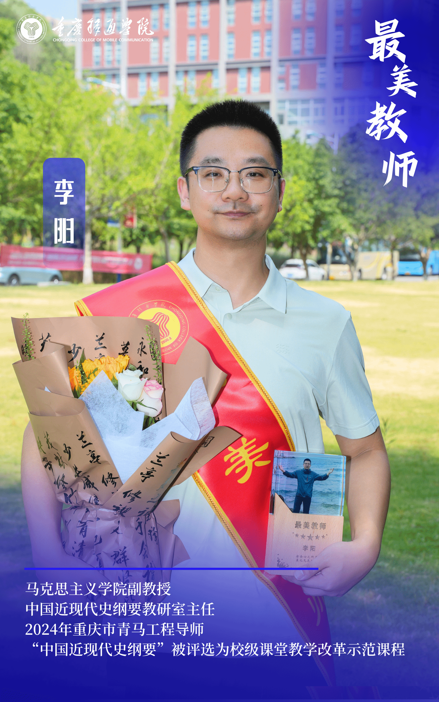 李阳,1986年出生,重庆江津人,副教授,2024年重庆市青马工程导师,马克思主义学院中国近现代史纲要教研室主任。所授“中国近现代史纲要”课程被评选为校级课堂教学改革示范课程。在校期间,主持主研省部级各类课题8项、区级课题4项、校级教研教改项目10余项;主持及参与校级一流课程建设2项、校级核心课程建设2项;获得校级教学成果奖二等奖1项、三等奖3项;在各级各类期刊上发表学术论文多篇。先后获包括重庆市级、校级教学竞赛一二等奖10余项、校级思政教师专项奖励一二等奖2项、远景百万优秀教师以上奖励5项、校级全生异科优秀导师3项。联合指导学生在2023年第七届全国大学生讲思政课比赛获三等奖,实现学校零的突破。