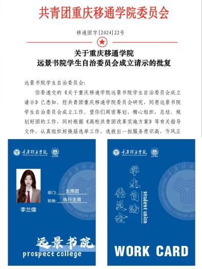 李兰儒,2022级财务管理专业,现任一届一任远景书院学生自治委员会主席,远景学院2022级02团支部团支书,重庆移通学院品牌营销与宣传新闻中心学生助理,双体第28期项目部学员。获校三好学生,校二等奖学金,优秀共青团干部,校先进个人等荣誉称号,在各项竞赛中累计收获国家级奖项5项,省市级奖项6项,校院级奖项18项;参与三校四区学生干部交流3次,一次性通过大学生英语四级、普通话水平测试,荣获中国营销策划师资格证书,拥有两次大厂实习经历。远山成景,交相辉映,我在菩提树下续写春诗,去更远的地方见更亮的光。