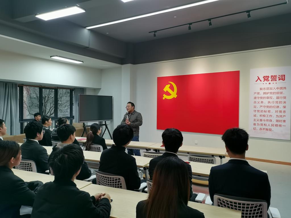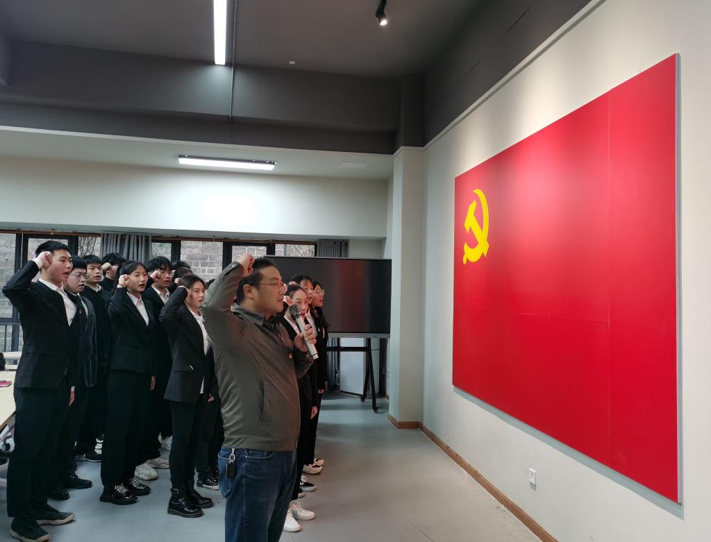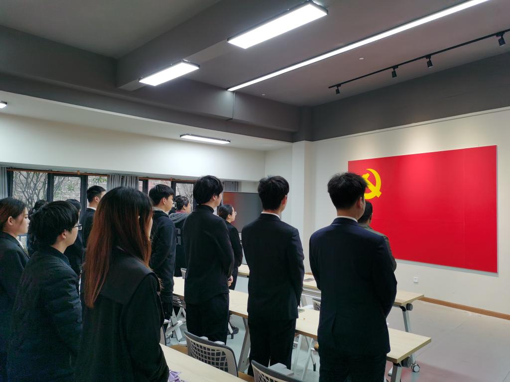 12月10日下午,中德应用技术学院在南湖书院党团活动室举行了庄严神圣的2021年秋季学生预备党员入党宣誓活动。参加此次活动的有校纪委书记、院总支书记尹浩亮同志,学生支部委员会的莫晓雯老师、王媛媛老师、肖瑶老师和李倩老师,仪式由学生第一党支部书记莫晓雯老师主持。