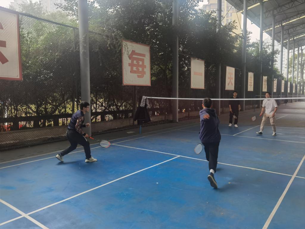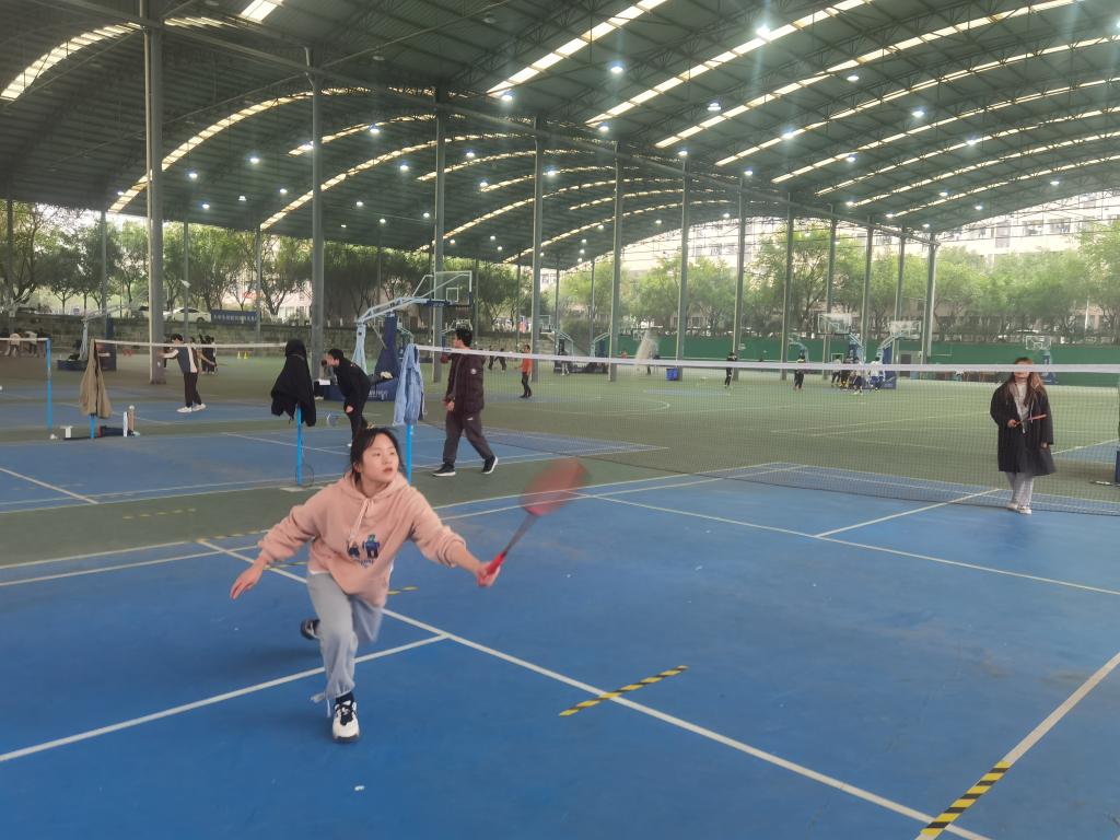 有的同学一出手就知具有专业水平,打球不仅快,而且狠、准!有的同学恰好棋逢对手,不相上下。白色的羽毛球在空中飞来飞去,别有一番风景!大家打的酣畅淋漓,在彼此的竞争中增进了解。