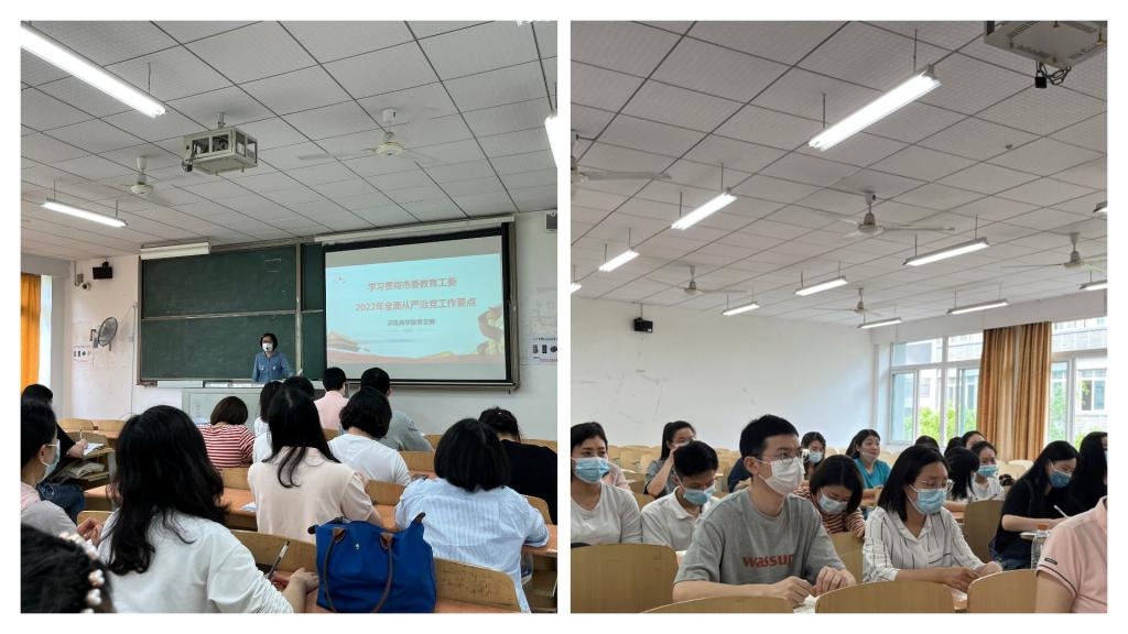 4月27日下午1点30分,淬炼商学院党支部在5305教室开展“学习贯彻市委教育工委2022年全面从严治党工作要点”主题党日活动,活动由淬炼商学院党支部书记曾璐主持,所有党员(含预备党员)参与活动。
