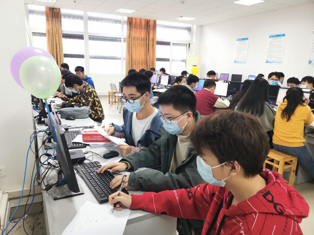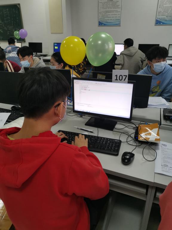 11月3日下午3时,比赛正式开始。随着时间一分一秒过去,不断有选手答题获得气球,一场紧张激烈的气球争夺战在选手之间展开。参赛选手们在心中构想、在纸上演算,认真思考,沉着应战,通过一串串代码表达出他们的所思所想。监考老师和志愿者们做好监督服务工作,保证比赛的公平公正。