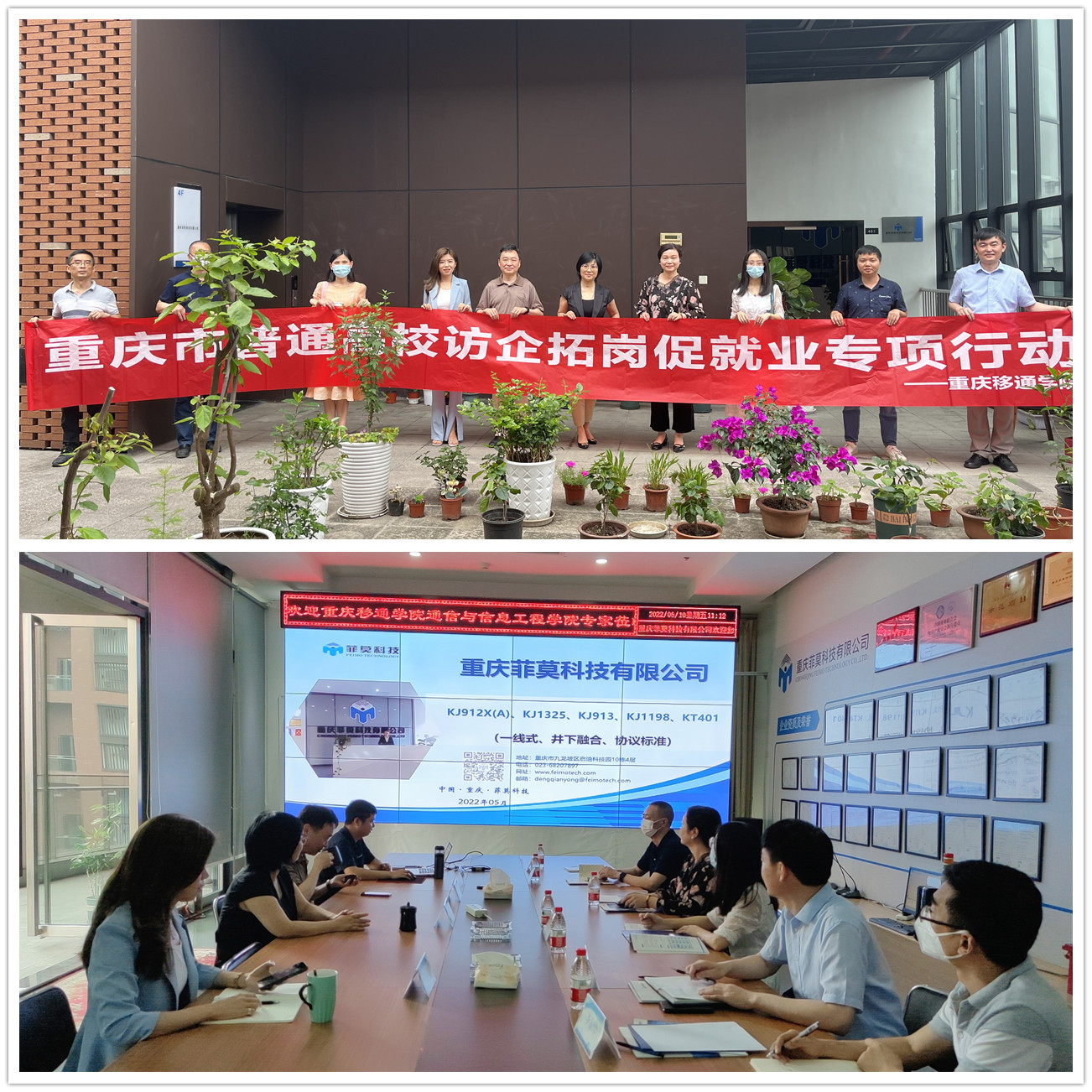 为贯彻落实教育部全国高校书记校长访企拓岗促就业专项行动工作部署,推动就业创业工作提质增效,6月10日上午,重庆移通学院副校长孙玺、通信与信息工程学院院长李文娟、副院长唐林建、教研室主任席兵等一行赴重庆菲莫科技有限公司走访调研。重庆菲莫科技有限公司董事长晏瑛、副总经理陈金沙、人力资源行政部部长李东梅和科研管理部部长邓乾勇出席了此次活动。