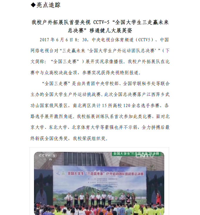 我校户外拓展队首登央视 CCTV-5“全国大学生三走赢未来总决赛”移通健儿大展英姿