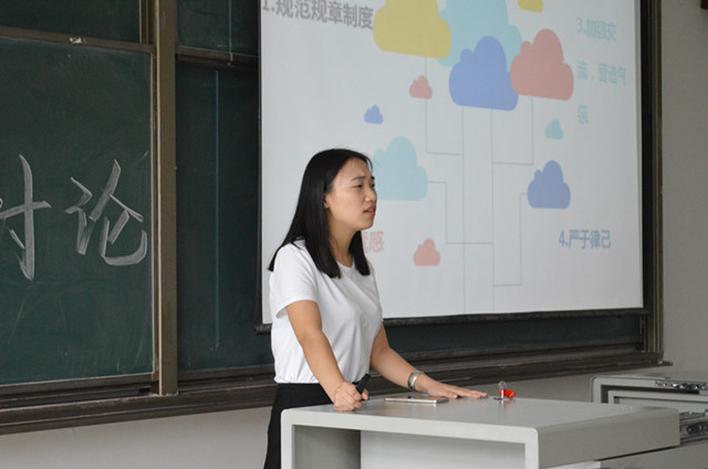 在简单的开场白之后,我系宣调部部长伍桂君同学首先进行了关于干部归属感的调研问卷报告。本次调研由线上和线下调研共同组成。通过交流感,安全感,舒适感,识别感,成就感这五个方面阐释了归属感。结合不同调研内容,每个人都充分发表了自己的建议,不同的态度,让我们进行更好的交流。有独立的见解,能够融入团队,不仅能提升团体工作的质量,更是一种对自身能力的提升。本次讨论他们还通过对不同学生进行微采访,来了解他们心中的归属感,从而让完满工作进一步完善。经过分析调研报告,总结出以下问题: