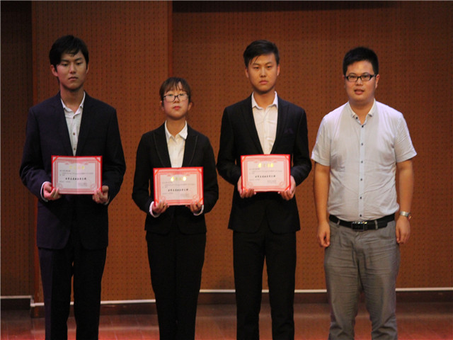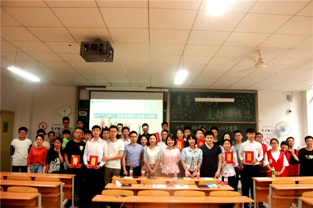 接着,学工办主任李巧老师宣读了关于表彰2016-2017学年优秀团支部和优秀志愿者的决定。唐彬文老师为荣获优秀团支部的05141602支部、05111603支部和05111604支部颁发奖章,李巧老师为李锐、秦浩天等十名优秀志愿者颁奖并给予鼓励。