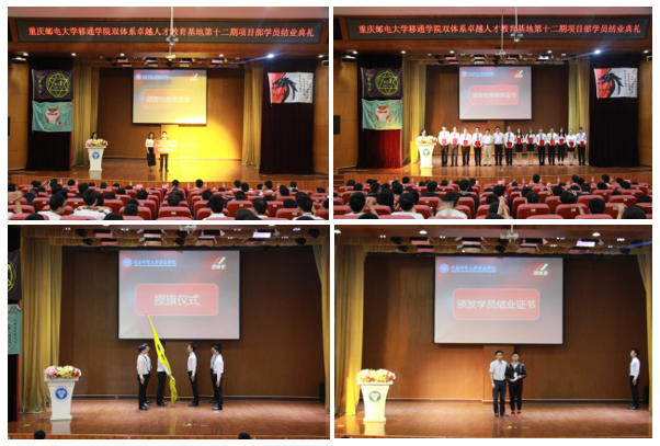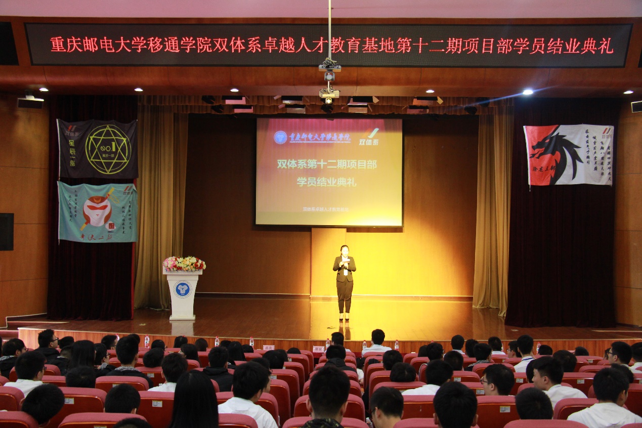 结业的脚步悄然而至,2017年6月29日上午10点整,双体系卓越人才教育基地第十二期项目部学员结业典礼在下里巴人剧场举行。重庆邮电大学移通学院院长助理周伟老师、各系部负责人、双体系全体师生以及在斗鱼直播网站上观看典礼的往期学员齐聚于此,畅叙情谊,共同见证双体学员四个月一路走来的成长和蜕变。