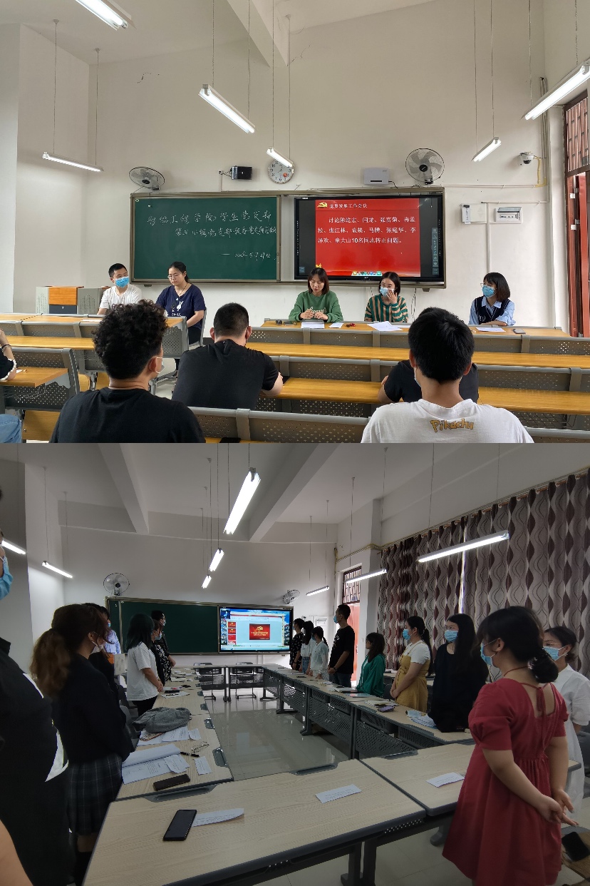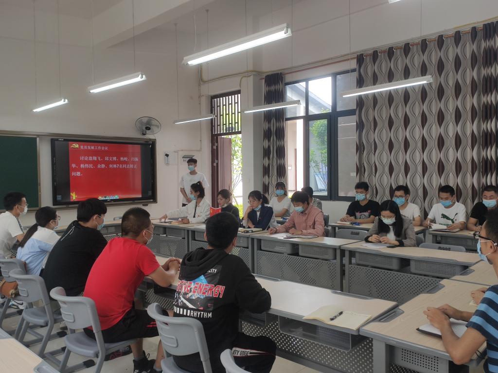 随着庄严的国歌奏响,红色党旗飘扬在心中,党组织即将迎来一股新生力量。会上,预备党员翁翔飞同志在发表转正申请时谈到自身近期的状况,疫情期间积极响应国家号召,居家不外出,随时与班上同学沟通,提醒同学们做好个人防护措施。翁翔飞同志的发言凸显出党员意识和对党的矢志不渝。李凤同志对其提出建议,希望该同志继续发扬优良品质,能在毕业就业的过程中给周围同学更多帮助,贯彻全心全意为人民服务的宗旨。