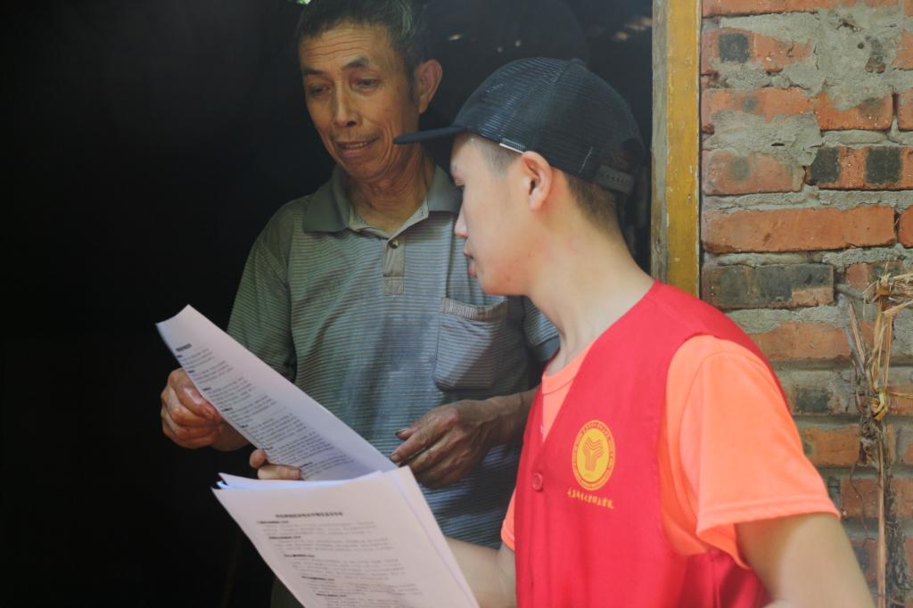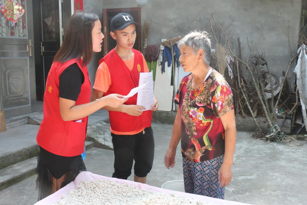 走进乡土,科技调研!7月11日,农耕协会“向日葵”科技支农帮扶团的志愿者们从龙市镇街徒步4公里到达位于龙市镇西南方向的飞龙村,深入到村民家中进行走访调研,宣传国家关于科技支农、惠农方面政策,了解村民农事需要,虽炎炎夏日却依旧阻挡不住志愿者们进乡入户进行科技支农宣传工作。