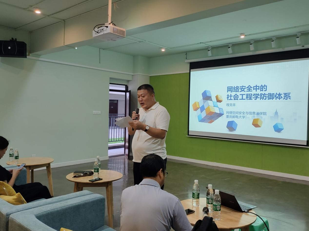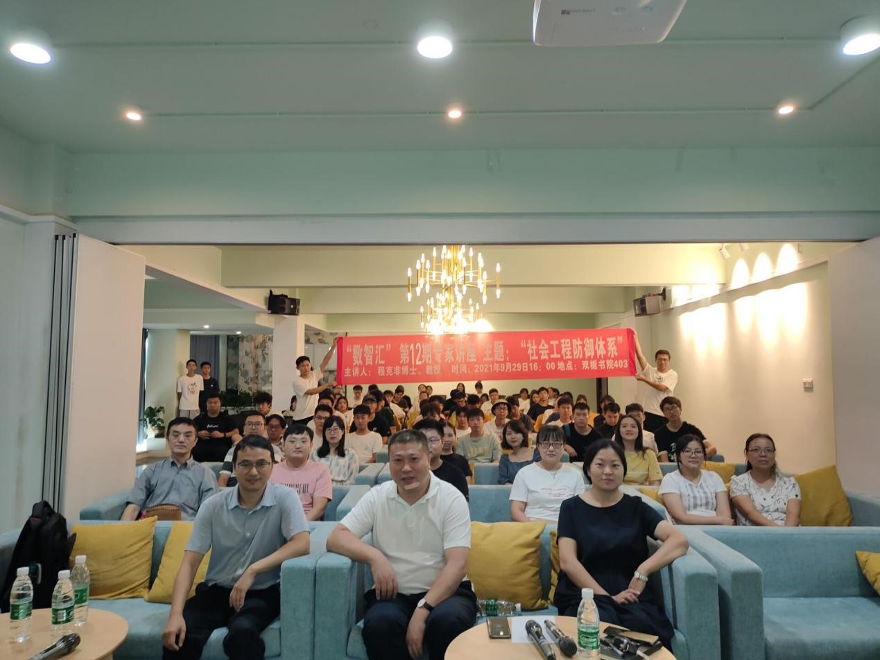 现如今社会诈骗的方式各种各样,个人信息频频泄露,为了加强同学们的网络安全意识。我院于9月29日下午16:00在双栀书院多功能影音室举办第十二期“数智汇”专家讲座。莅临本次讲座的嘉宾有数字经济与信息管理学院院长潘显兵教授,数字经济与信息管理学院副院长刘贵容教授,以及来自学院的其他负责老师。主讲人是来自于重庆邮电大学网络智能与网络技术重点实验室主任,信息网络安全实验室主任程克非教授。此次专家讲座主要介绍了社会工程学和信息安全,其中教授为我们详细的讲解了各种骗术,并提出了社会工程防御体系。