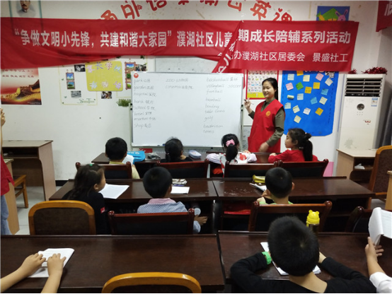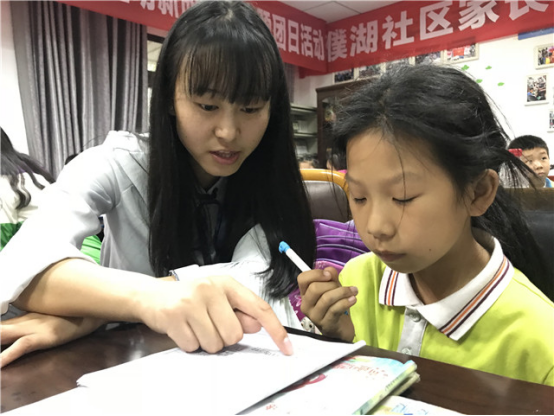 蒲公英课堂里,小朋友紧皱着眉头,咬着嘴唇。 “我不会做这道题怎么办?”“小朋友们别担心,你看我慢慢的讲给你听哦。” 志愿者低下头,拿起笔开始演算这道题的解题过程。一人轻声讲解,一人偏头倾听,一起挑战学业中遇到的难题。