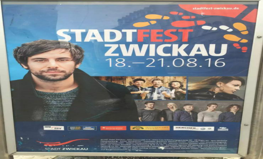 2016年8月1日到28日,我很高兴能够参加重庆邮电大学移通学院组织的“暑假德国F+U”培训项目。作为8月德国游学的带队队长,我和我们团队的小伙伴们去了茨维考、柏林、慕尼黑、莱比锡、法兰克福等各大德国主要城市,参观游玩了众多当地特色的人文景点,然而让我印象最为深刻的莫过于茨维考的城市音乐节。