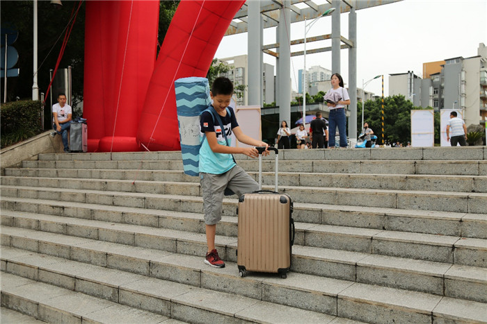 不少家庭都是“全家总动员”,有的弟弟妹妹帮哥哥姐姐拿个小包,甚至还有的小弟弟提着有自己大半身高的行李。小萌娃也有大力量,可不能小看了他们。