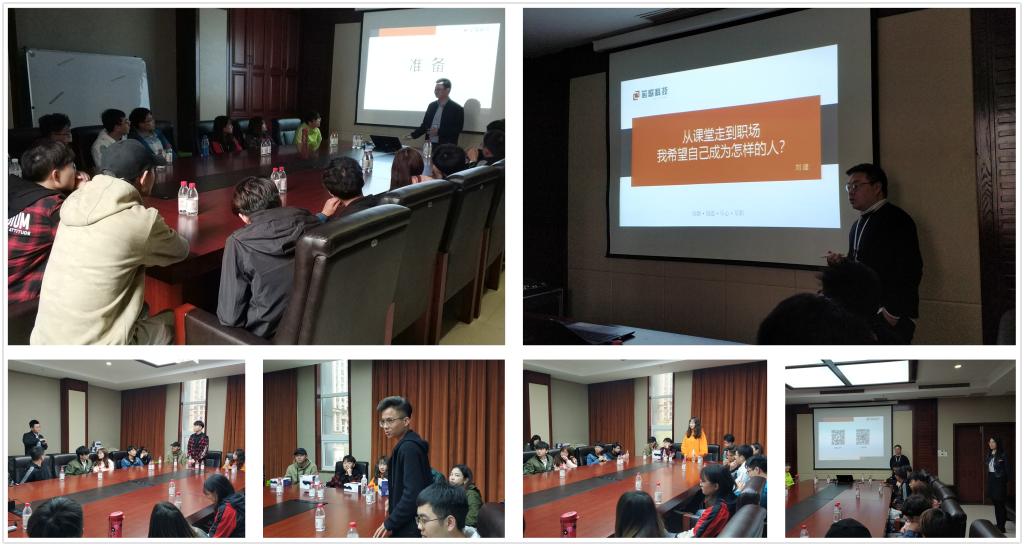 刘建学长在校时曾任校团委学生副书记和双体系新媒体中心运营总监,他为我们分享的主题是“从课堂走到职场,我希望自己成为怎样的人”,以三个词、八句话为主线,讲述了他的完满履历和工作经验。