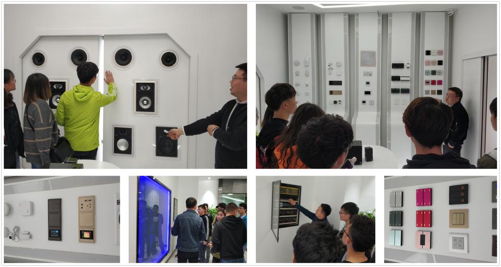 值得一提的是,芯歌科技公司的联合创始人张启航(2009级电气工程及其自动化)和刘建(2013级信息管理与信息系统)均是我校的毕业生,能来到学长们创立的企业使同学们倍感亲切。在前台大厅区域,工作人员为同学们展示了智能灯光系统、智能感应系统、背景音乐系统、智能门禁系统。在机柜展示墙,智能感应、智能灯光及电动雾化玻璃相结合,当感应器探测到人体时,该区域灯光自动打开,同时原本模糊的雾化玻璃自动变成透明模式,每个区域的变化和体验都叫同学们赞不绝口。