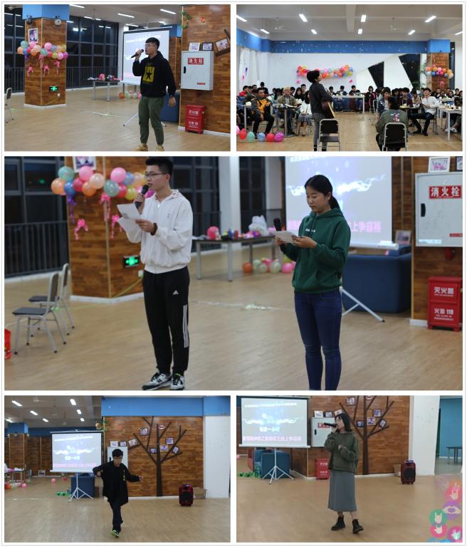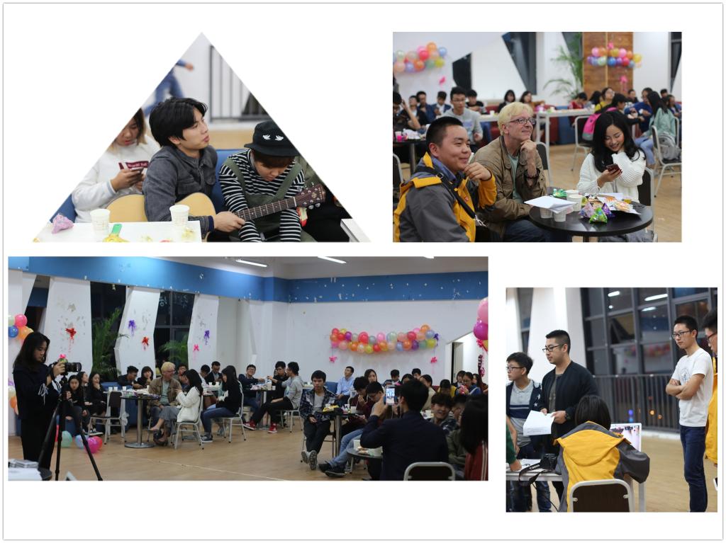 为张扬青春个性,陶冶学生的情操,同时丰富大学生的寝室生活,书院一小时·爱莲疯神榜之我是歌王线上争霸赛活动于2017年11月2日晚八点整在C区活动室隆重举行。莅临本次晚会的嘉宾有中德学院外教John老师、理解万岁乐队主唱余航和鼓手老孔、爱莲书院的综合办主任孙佳婧老师、发展导师金鑫及爱莲书院的优秀学生代表,本次晚会现场参与人员达八十余人。