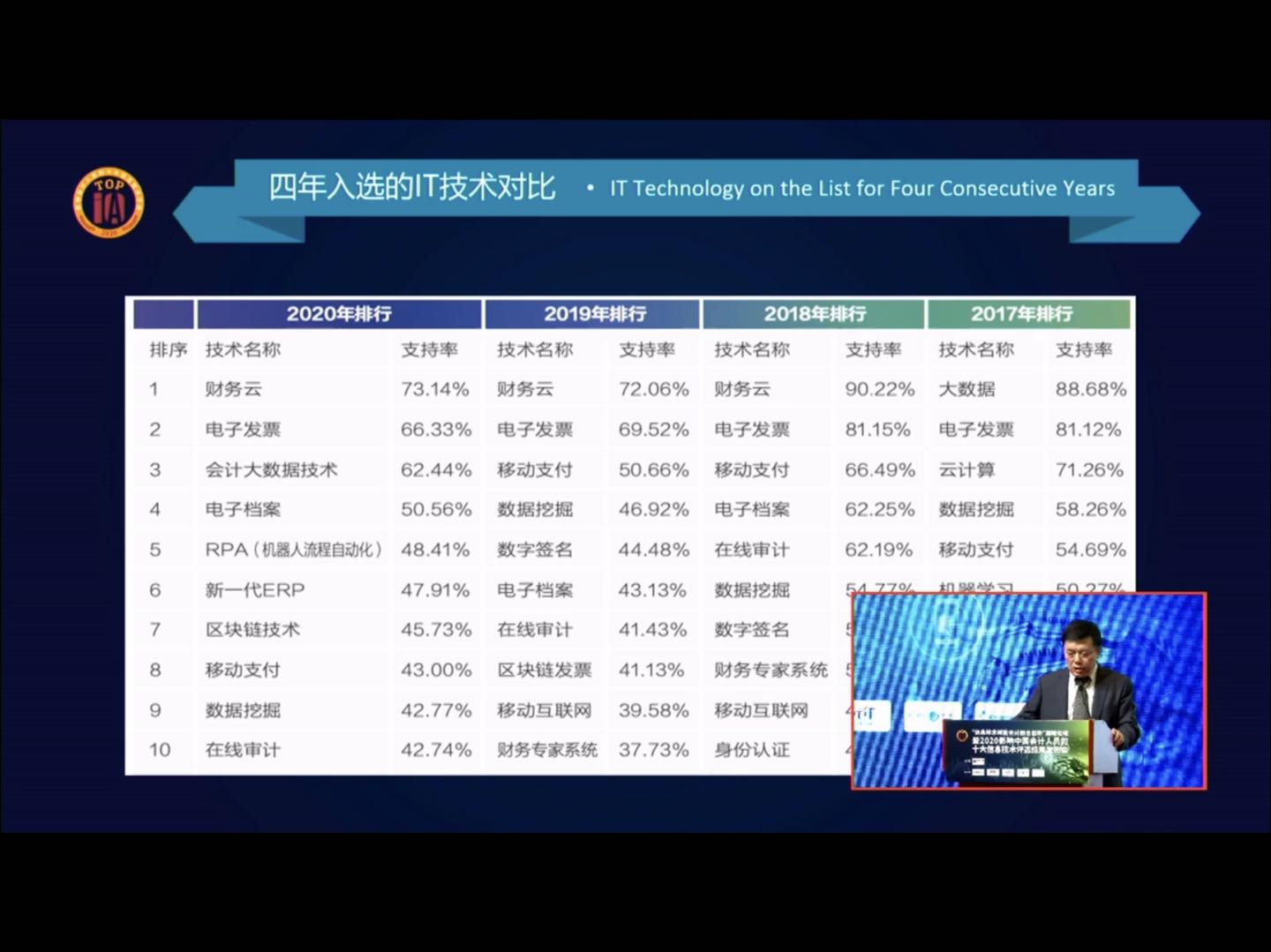 那么,未来哪些信息技术将会广泛应用于会计核算?这些信息技术的应用将会对会计行业带来什么样的变革?信息技术升级又会对会计人员的能力提出什么样的新要求?带着这样的疑问,我校财务管理教研室骨干教师于6月20日,应邀参加了上海国家会计学院主办,中国会计学会会计信息化专业委员会协办的“信息技术赋能会计融合创新”高峰论坛暨2020年影响中国会计人员的十大信息技术评选结果发布会。