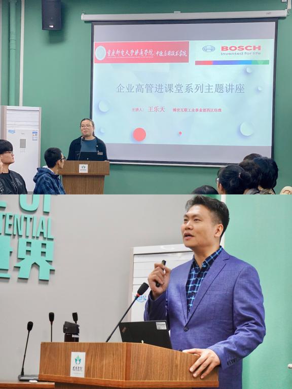 为进一步推进校企合作的深度融合,促进中德学院教学模式多元化发展,积极拓展学生视野,坚定学生出国留学信念,做好2021届毕业生就业工作,10月29日19点,中德学院联合就业创业指导与服务中心邀请到世界100强企业德国博世集团高管-博士互联工业事业部西区经理王乐天在花果书院大型会议室201成功举办了以“职业规划-未来,我来”为主题的企业高管进课堂第三期讲座,本次讲座由中德学院教学副院长侯宇晶主持,优秀学生代表参加此次讲座。