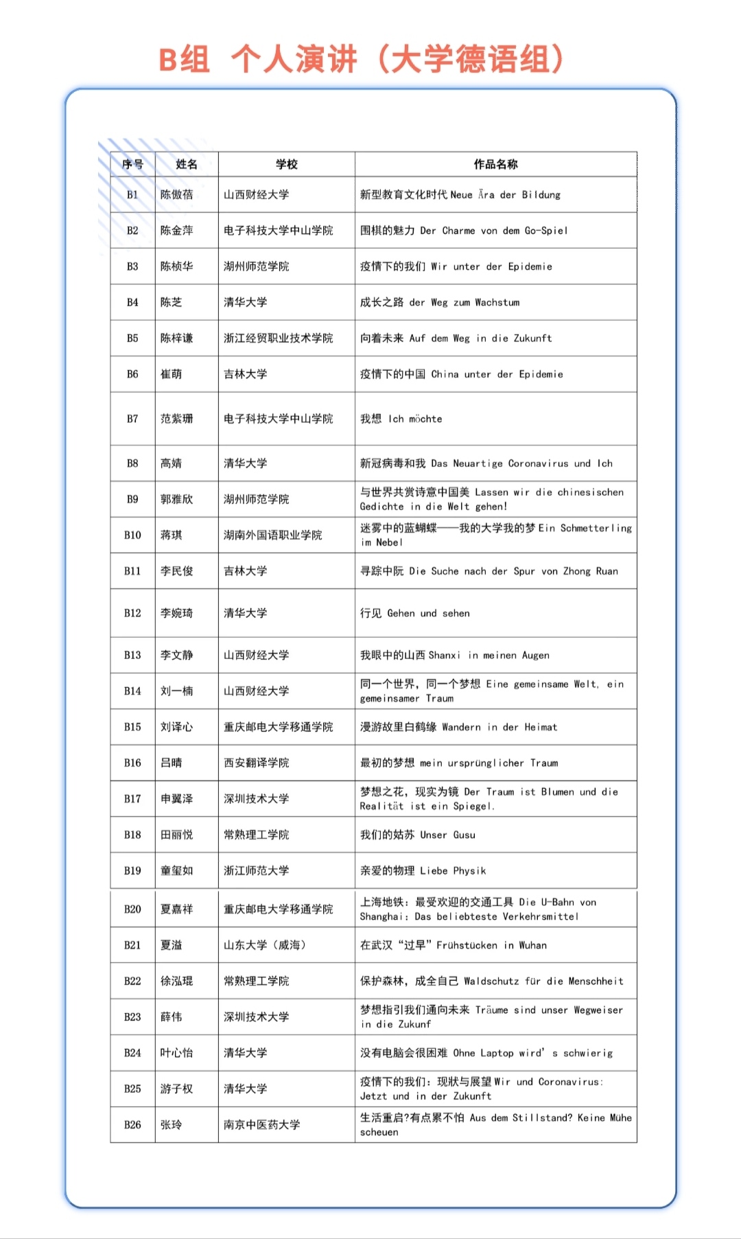 除了入围决赛的两位学生外,还有许多学生通过参加此次比赛,积极运用德语知识,讲述中国故事,更加明确了作为未来走出国门后所肩负的使命;同时,通过与全国高校德语学习学生之间的交流与比赛,更清楚地认识到了自身的优势及劣势,为之后德语学习树立了更加明确的目标。我院学生纷纷表示,以后会更加积极地参加类似比赛,展现自身风采,为中德学院争光,为学校争光。
