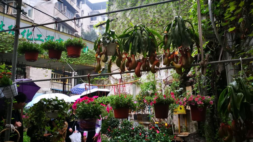 花圃之旅的第一站是在一个喧嚣的市场。叫卖、还价声此起彼伏,市场里到处是忙碌的气息。在社长的指领下,社员们来到一间门前摆满了绿色植物的花店。进入花室,“苔痕上阶绿,草色入帘青”,令人浮躁的心渐渐平静。粉红色的芍药花怒放着,艳丽与清雅并存,娉婷婀娜;五彩的虞美人妩媚秀丽,百媚千娇,令人陶醉;更有盛开的金盏菊犹如一个个小太阳,给人以希望与光芒。不同品种的花卉共同生长着,共同营造出了一个花的世界,让人叹为观止。对于一些不太懂的花卉,社员们则使用识图软件进行查找以加强了解。此外社员们也会主动请教社长和花农一些花卉的基本信息及培养方法。大家因相同的兴趣齐聚于此,共拾宝贵的知识财富。