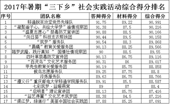 通过有序的展示,结合答辩得分和材料得分,17个队伍综合得分公示如下: