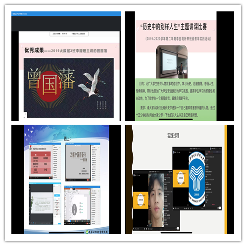 针对各专业各年级学生的实际情况,本课程不同老师布置安排了丰富多样、各具特色的的实践作业。李亚莉老师开展了以“历史中的别样人生”为主题的讲课比赛,旨在让学生们在讲人物故事中,学习历史,启迪智慧,感悟人生,传承精神;王婉伊老师以“道来一段尘封的往事”为主题围绕《纲要》课组织学生进行演讲,为学生们营造了良好的学习氛围,提高了学生们的积极性和主动性;此外,在李潇潇老师的指导下,其授课班级学生既有开展课堂演讲的教学成果展示也有视频拍摄记录的课程反思,实现线上与线下教学实践有机融合,激发了学生们的聪明才智。