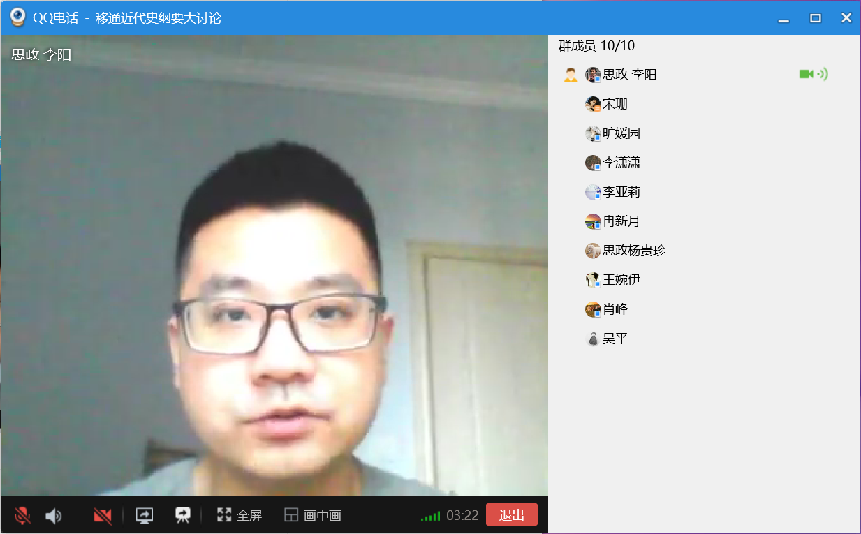 为展示实践教学成果,更好地激发学生的学习兴趣,让每一位学生在实践中学会思考、懂得感悟,思政教学部思想政治理论教研室《中国近代史纲要》课程组于6月10日下午10点组织举行了实践教学成果交流暨课程总结活动。会议由思政教学部思想政治理论教研室主任李阳老师进行主持。