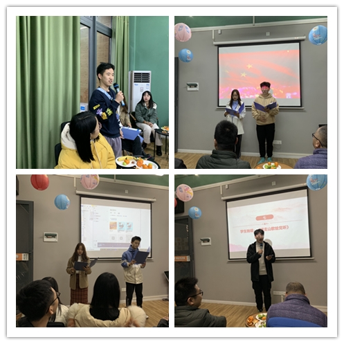 分享过后,学生们就党史了解和学习中产生的不解提出了疑问,在场的老师们一一进行了解答,通过交流师生之间的距离顿时拉近了,现场的氛围越来越热烈。为了表达对伟大中国共产党无限的敬爱之情,学生们还在沙龙中送上了朗诵节目《党旗下的情思》和《幸福曙光》,活动氛围持续高涨起来。随后,围绕中国共产党的成立与发展精心设计的党史知识竞答环节让学生们既收获了不少知识,又体验到了抢答的紧张刺激,把整个活动推向了最高潮。