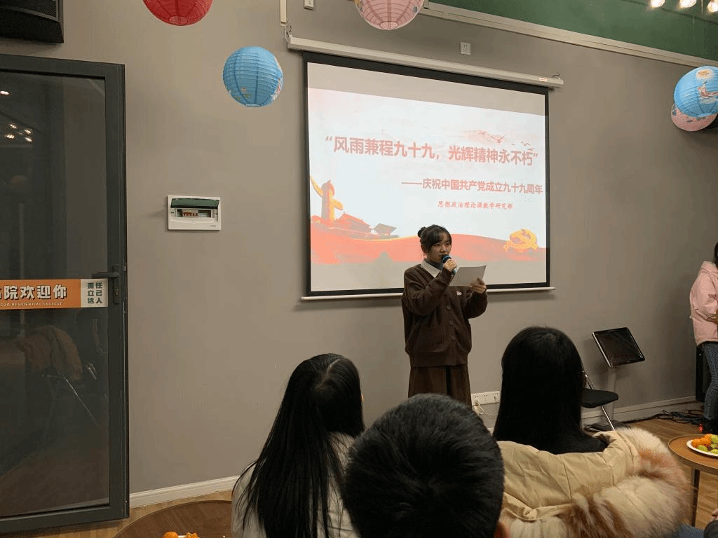 为隆重庆祝中国共产党成立九十九周年,引导学生进一步认识和了解党团结带领全国各族人民进行革命、建设和改革并不断取得辉煌成就的历史,从而加深对党史的深刻认识,加强了对党的无限崇敬,自觉做到“两个维护”、坚定“四个自信”。思政教学部政治理论教研室于11月25日下午在花果书院多功能活动室举行了以“风雨兼程九十九 光辉精神永不朽”为主题的第十四期“青春思索”主题沙龙活动。政治理论教研室全体教师及2020级30余名学生代表参与了本次活动。