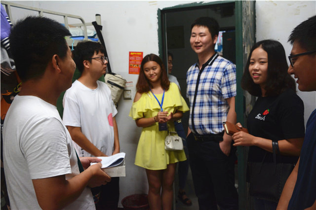 千磨万击还坚劲,任尔东西南北风。鱼城书院,承南宋之风,清新雅致,满舍书香。书院坐落于A12、A3,这里有清茶梵音,有书卷画稿,有同行好友,有先达之师,这里是开始的开始,也是最好的归宿。鱼城书院,你的心家,做一个有故事有想法的鱼城人,2017年9月17日晚,书院发展导师白金龙与管理工程系王冰倩、杨进两位辅导员一同走访了新生宿舍,并组织了鱼城书院学生自治委员会干部为同学们拍摄寝室全家福。