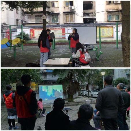 为响应党的十八大以来增强文化自觉和文化自信的号召,2020年11月6日,益起观影志愿服务支队的志愿者们带着经典影片——《黄金大劫案》来到南津路江亭街路社区,为社区的居民们放送影视作品。此项活动收获到南亭路社区居民的高度赞扬。志愿者们不仅在活动中学习如何与人相处,而且在观影的过程中与社区的居民一同接受爱国主义文化教育,培养了国家认同感和文化自信。“益起观影”以电影为媒介,是一种文学的延展,在志愿者与居民和居民间架起了心的桥梁,拉近了人们心的距离。
