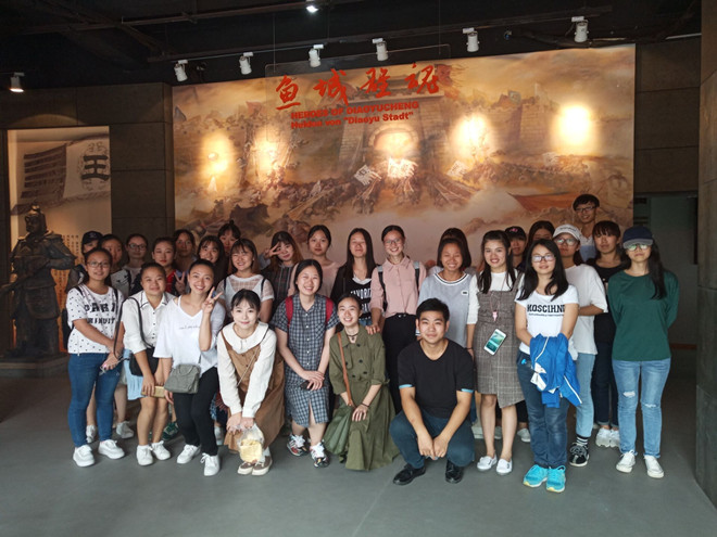 9月22日,一个雨后空蒙的下午,钓鱼城历史文化博物馆迎来了本学期的第一批参观团体——重庆师范大学涉外商贸学院的同学们。参观者们在博物馆学生讲解员沈一鸣、柏淞浩、裴画等人的引领下进行了参观学习,此行的目的是为了进一步了解与学习钓鱼城相关历史文化。