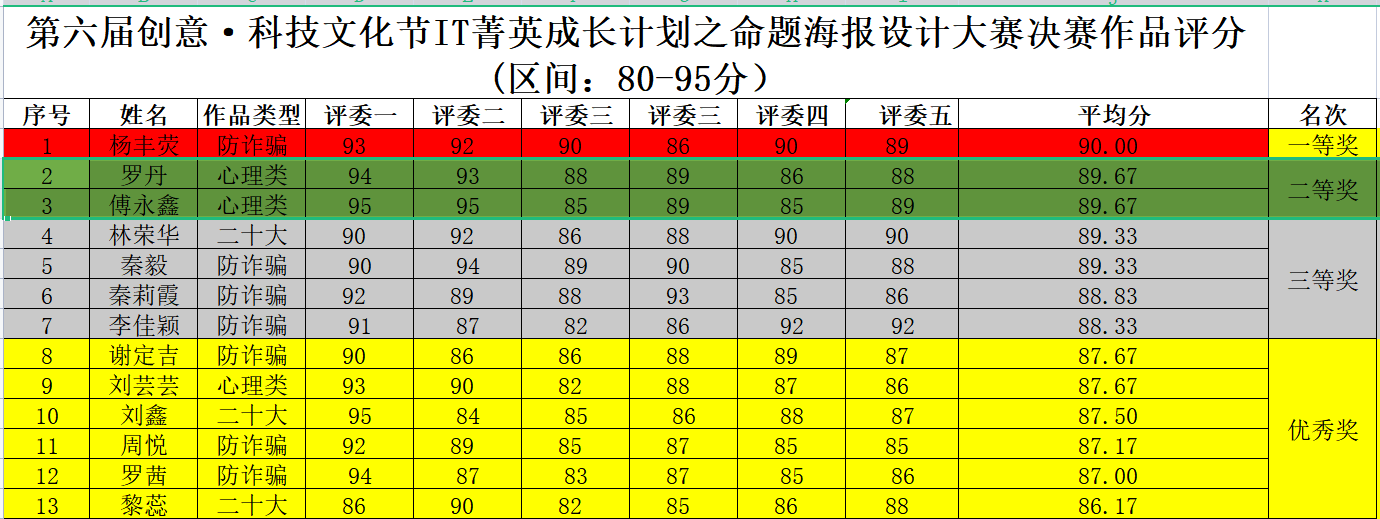 在主持人宣布比赛结果后,第六届创意科技文化节IT菁英成长计划之命题海报设计大赛也落下了帷幕!正如爱因斯坦所说:“若无某种大胆放肆的猜想,一般是不可能有知识的进展的”,正是有了每一位同学用心创作、大胆创新,才出现了优秀的海报作品。通过此次比赛,同学们都感受到了创作的魅力,学习到了新奇的设计理念。希望在今后的生活和学习中,同学们秉持创新思维,成为一位勇于创新,敢闯敢干的新时代大学生。