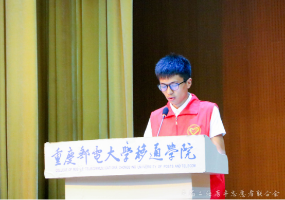 最后,由连任两届青年志愿者联合会主席叶思路简谈分享。在2014年9月,她加入“学府中央”四点半志愿服务专项支队,第一次和支队长出活动,看到那么多的小朋友,她变得害羞拘谨。在队长的鼓励下去接近他们辅导他们做功课,但是小朋友对她说的第一句话居然是“我不要你辅导,我要上一期的某某某姐姐来”于是他开始对叶思路闹。也就是因为那句话,叶思路告诉自己“我一定要让这里的孩子记住我”。从那以后,每周二的下午四点半之后叶思路把时间都留给了他们。一年的时间很快,四点半课堂要结业了,还记得那个胖胖小女孩的陈瑶,在所有人都走了后抱着叶思路哭,她说“姐姐,下学期你还来好不好?”“好,我来,我一定来”这是叶思路给他们的承诺,她留下来了,后面的每一期她依旧都在……在叶思路分享自己的成长历程,途中有过泪有过笑,但更多的成长。作为移通志愿领袖的叶思路更向大家发出志愿者这个温暖大家庭的号召:希望更多人可以加入志愿者,为移通校园、为社会、为祖国的志愿者贡献移通人的力量!