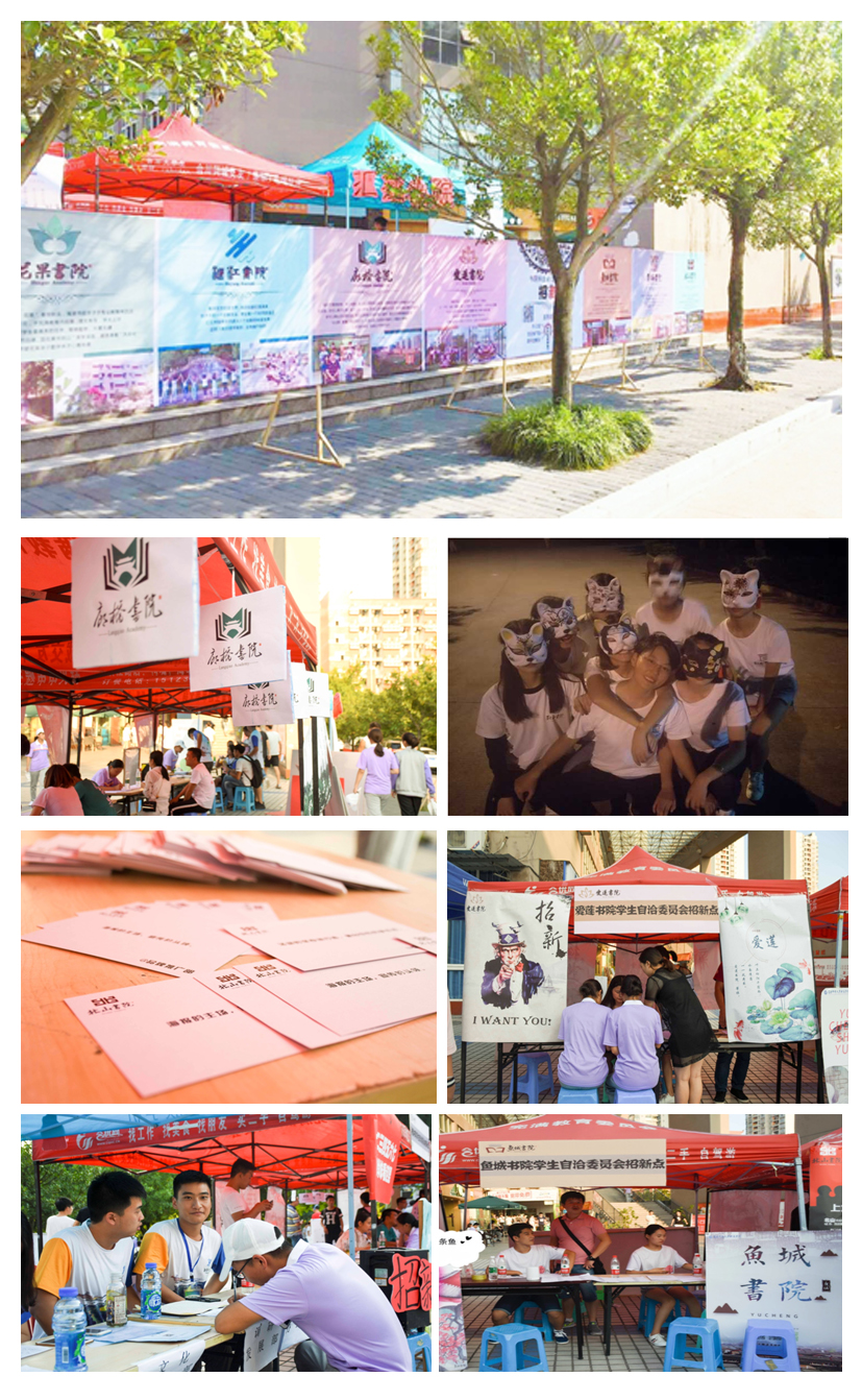 9月12日,整理好迎新的心情,各书院便紧锣密鼓的开始了招新的步伐此次招新每个书院都设置了七个部门:主席团、办公室、文化推广部、资源发展部、综合实践部、朋辈互助团、调研发展部七个部门,共有约一千多名学生积极参与了书院的招新面试。最后共招募了452名新生干事。书院的招新现场可谓是精彩纷呈: