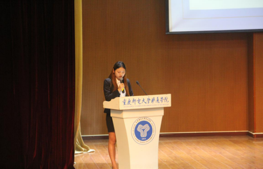 接着,第三届学生就业助理团团长李彤做了第三届学生就业助理团工作总结。李彤团长用她平实而充满真情的言语讲述着她在学生就业助理团的收获以及对第四届学生就业创业联合会的期望。