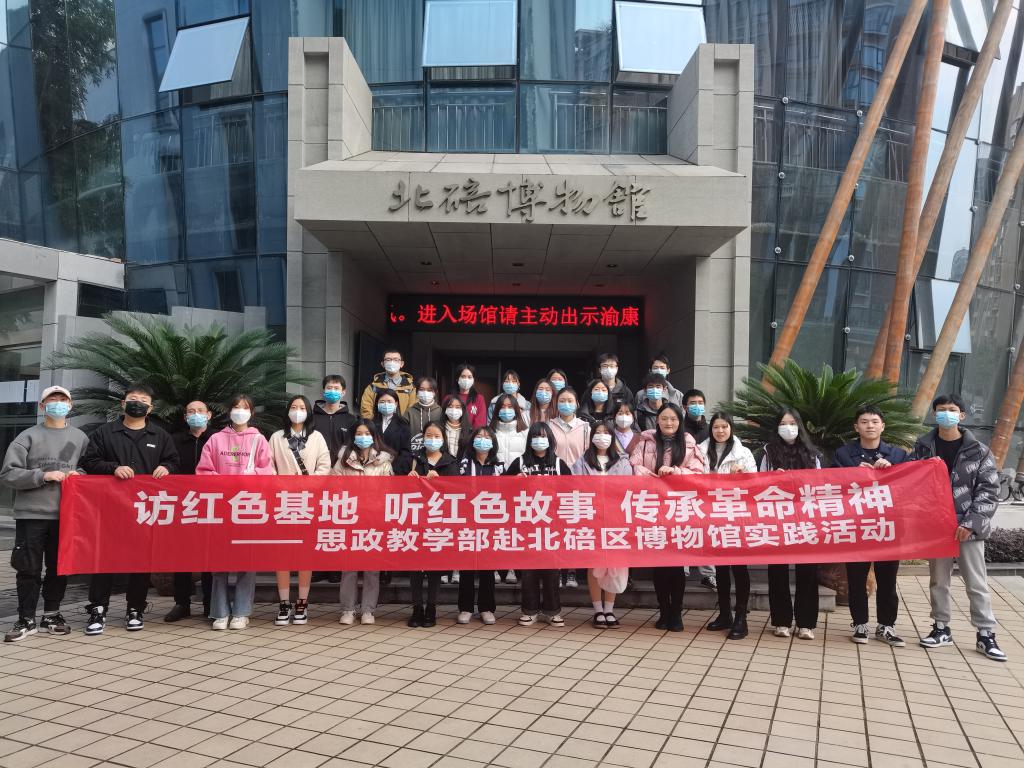 为深入贯彻习近平新时代中国特色社会主义思想和党的十九届六中全会精神,培育全面发展的社会主义建设者和接班人,用党的百年奋斗伟大成就鼓舞人心,凝聚力量。11月26日下午2点,思政部政治理论教研室毛光晨、田婷婷两位老师带领30余名师学前往北碚区博物馆参观学习。